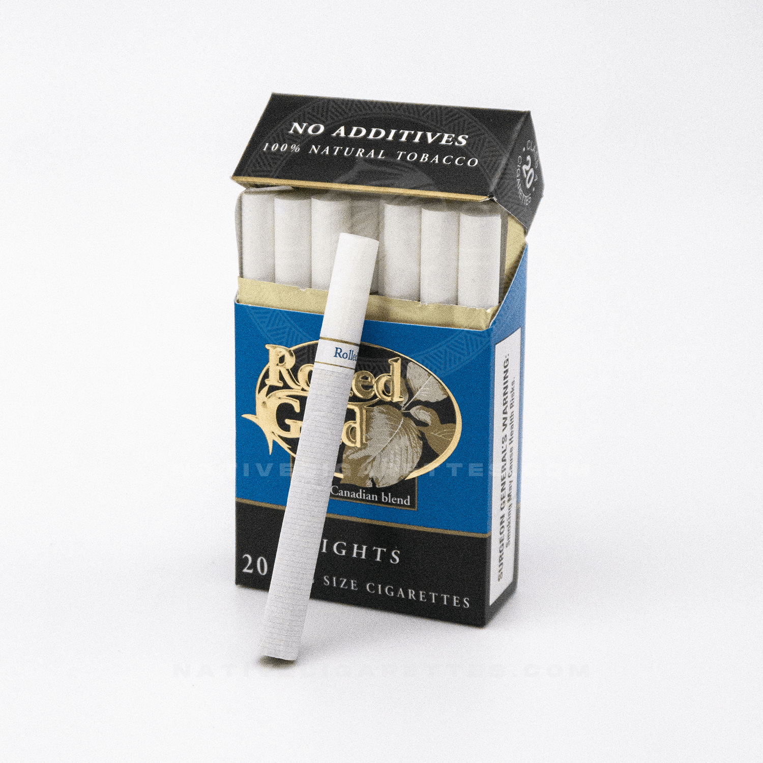 Enjoy the smooth taste of Rolled Gold Lights cigarettes by Thompson Tobacco, now available on Native Cigarettes! These cigarettes are made with 100% natural tobacco and contain no additives.